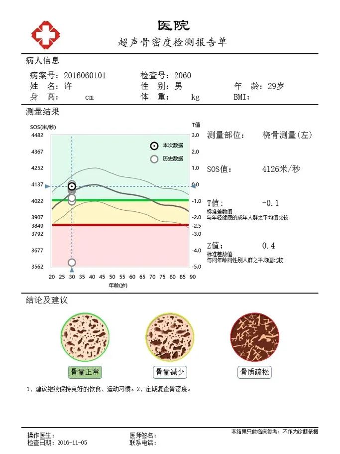 骨密度(BMD):全稱是“骨骼礦物質密度”,是骨骼強度的一個重要指標,以克/每立方厘米(g/cm2)表示,是一個絕對值。在臨床使用骨密度值時由于不同的骨密度檢測儀的絕對值不同,通常使用T值判斷骨密度是否正常。